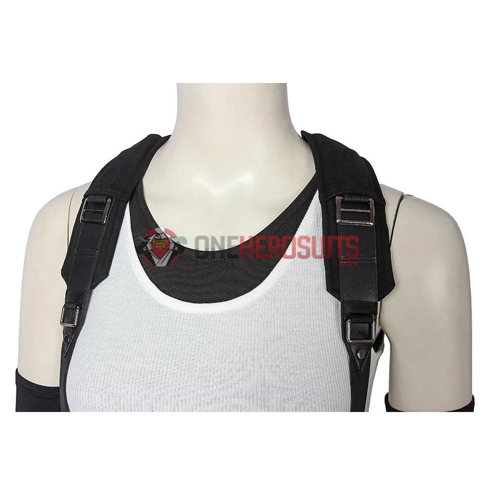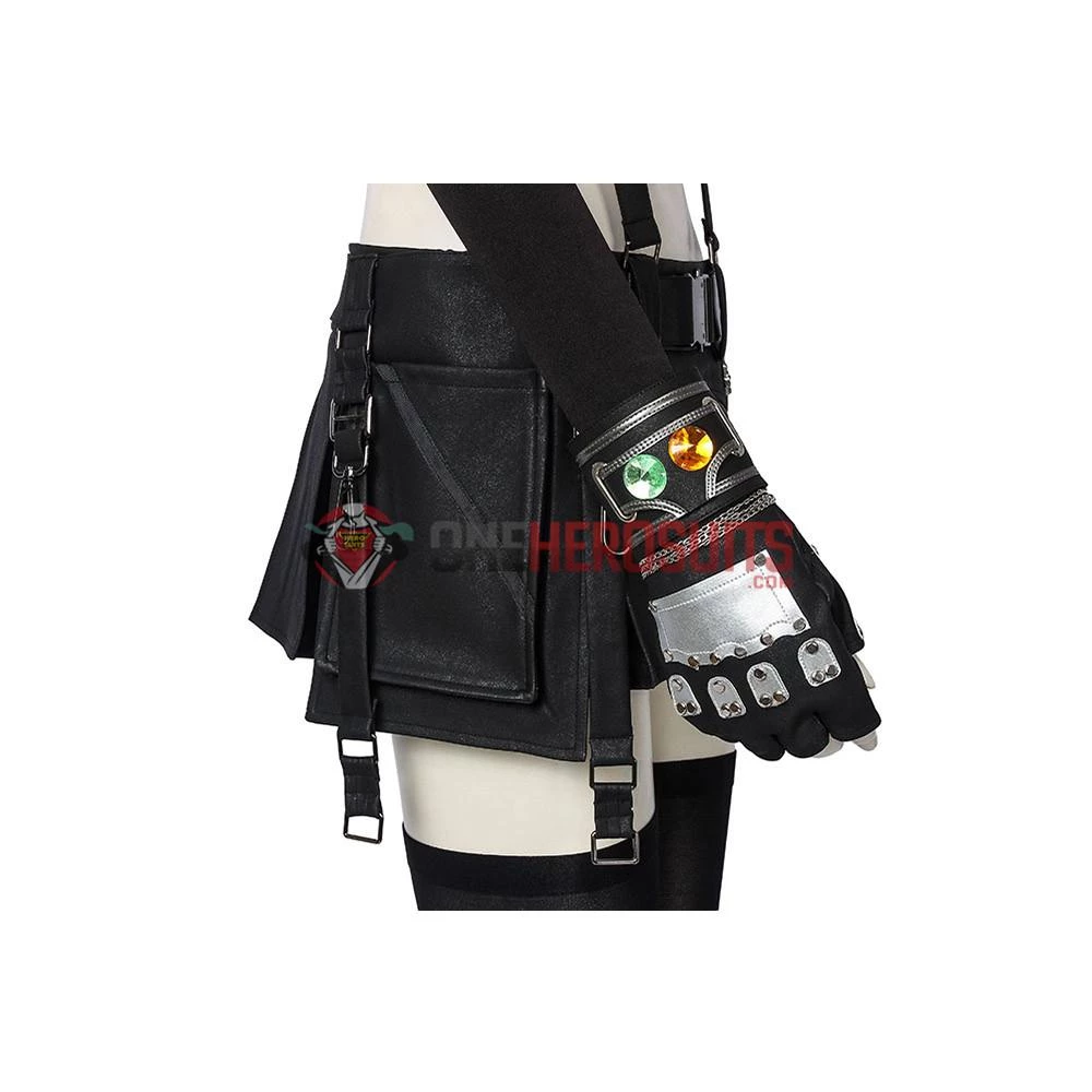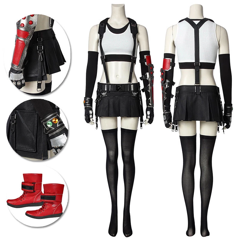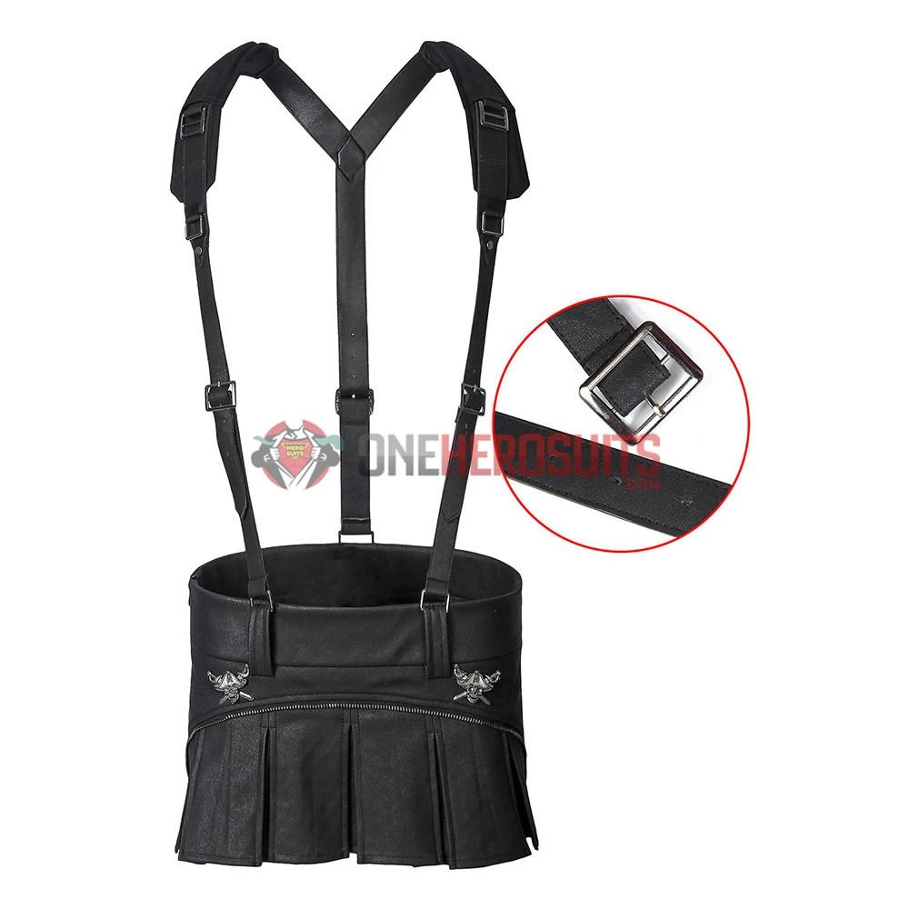 Full Set Includes: White vest, black vest, short skirt, bracelets, socks, harness, arm guard, sleeve, gloves, belt accessories
