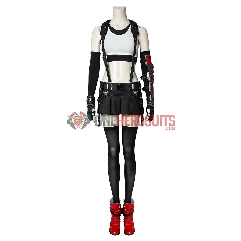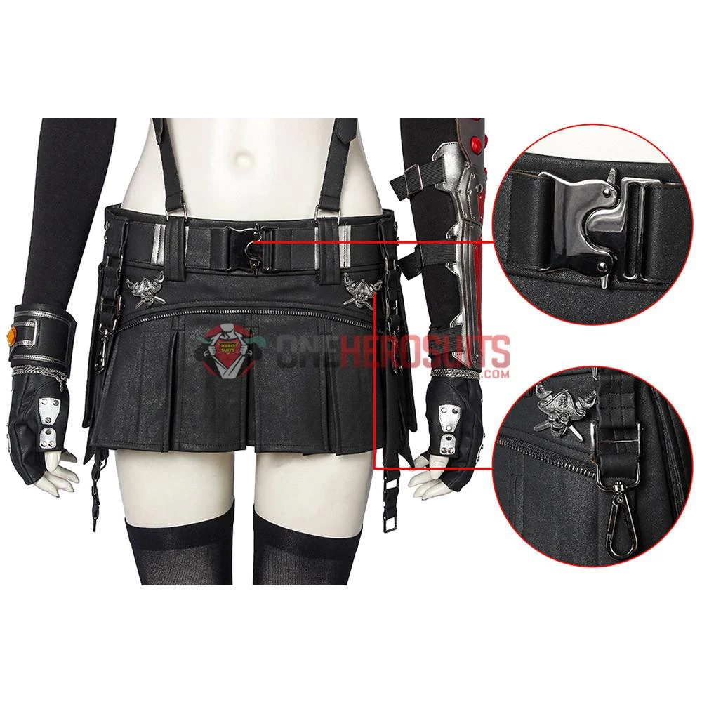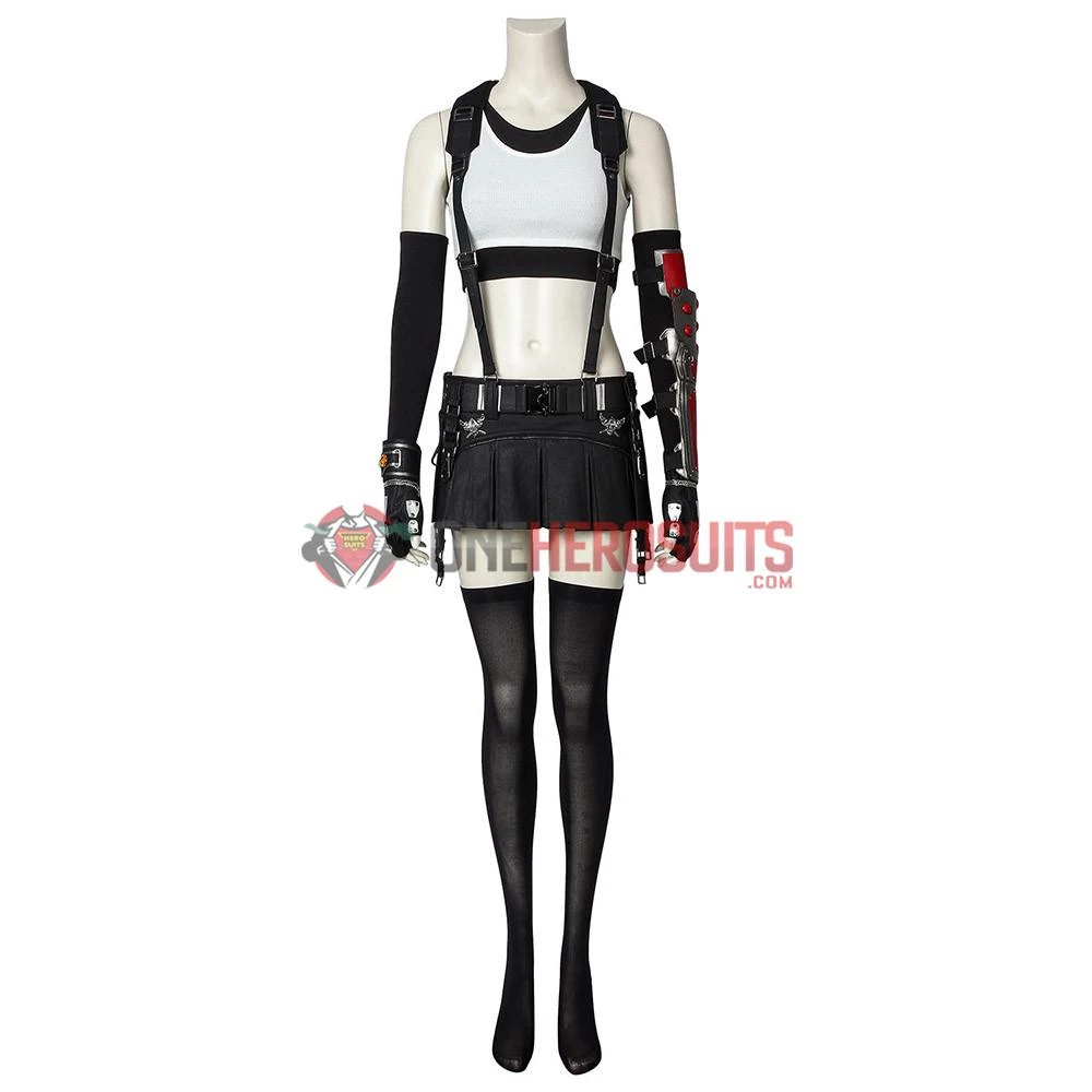 Full Set Includes: White vest, black vest, short skirt, bracelets, socks, harness, arm guard, sleeve, gloves, belt accessories