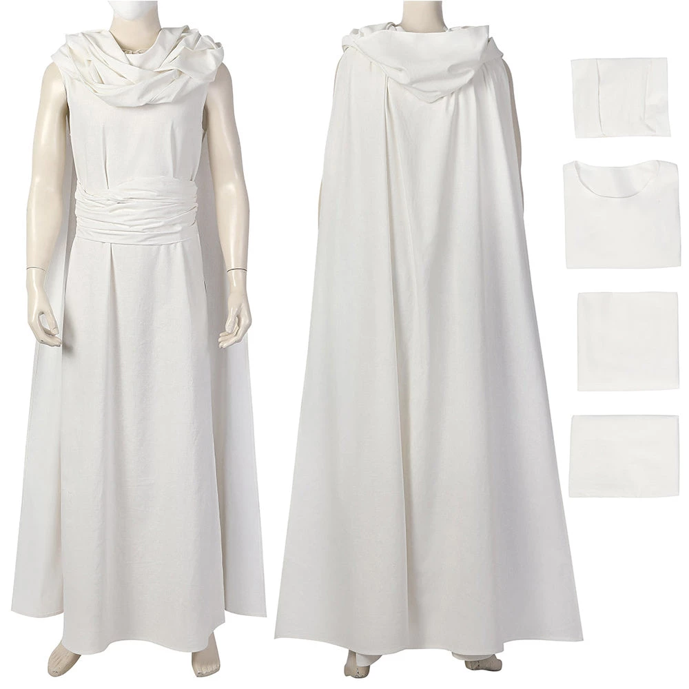 Full Set Includes: White robe, scarf, belt and also accessories, cape (with hood).