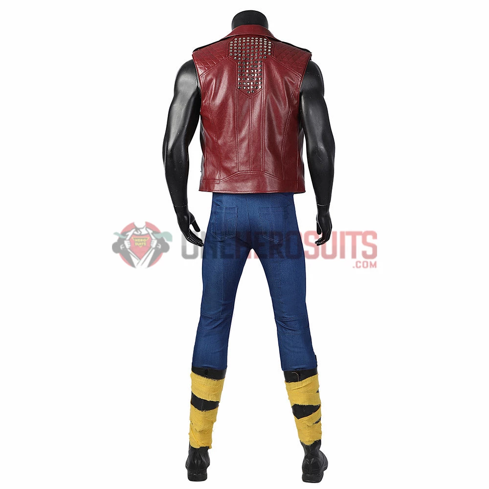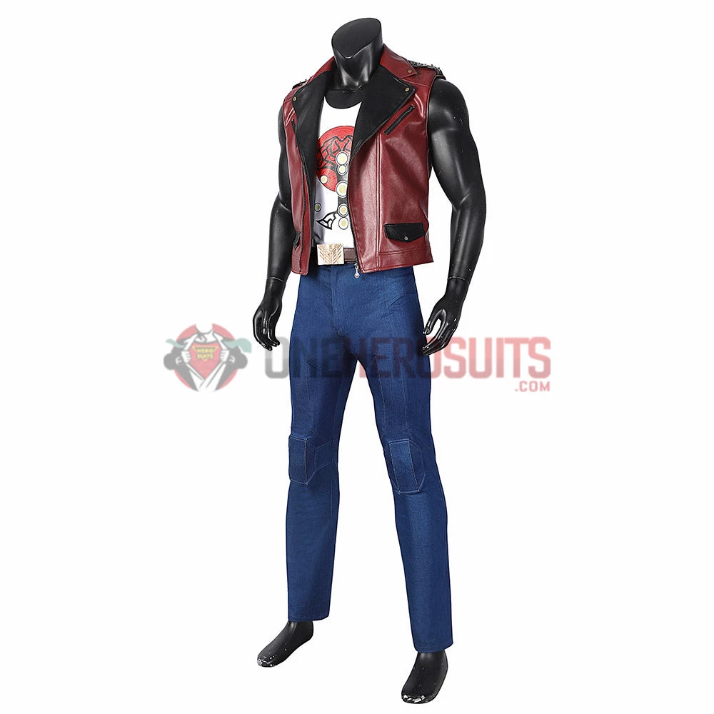 Full Set Includes: Sleeveless jacket, sleeveless T-shirt, belt, denims, leg bands, shoes (additional choices).
